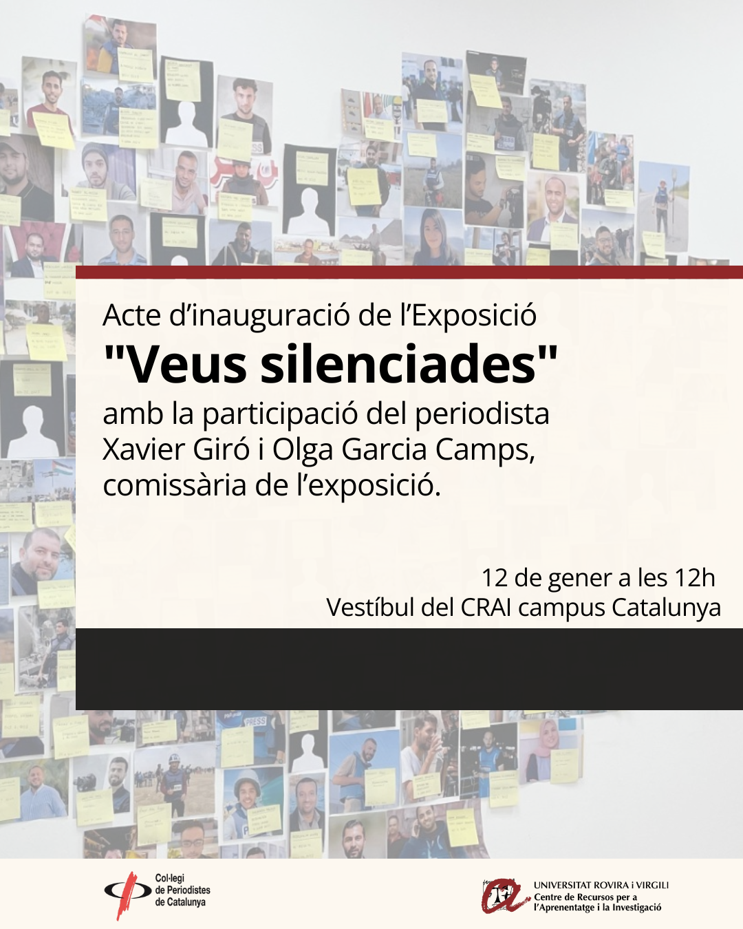 L’acte d’inauguració tindrà lloc el 12 de gener a les 12 hores al vestíbul del CRAI campus Catalunya amb la participació del periodista Xavier Giró i Olga Garcia Camps, comissària de l’exposició, membres del Grup de Treball de Periodisme per la Pau del Col·legi de Periodistes de Catalunya.