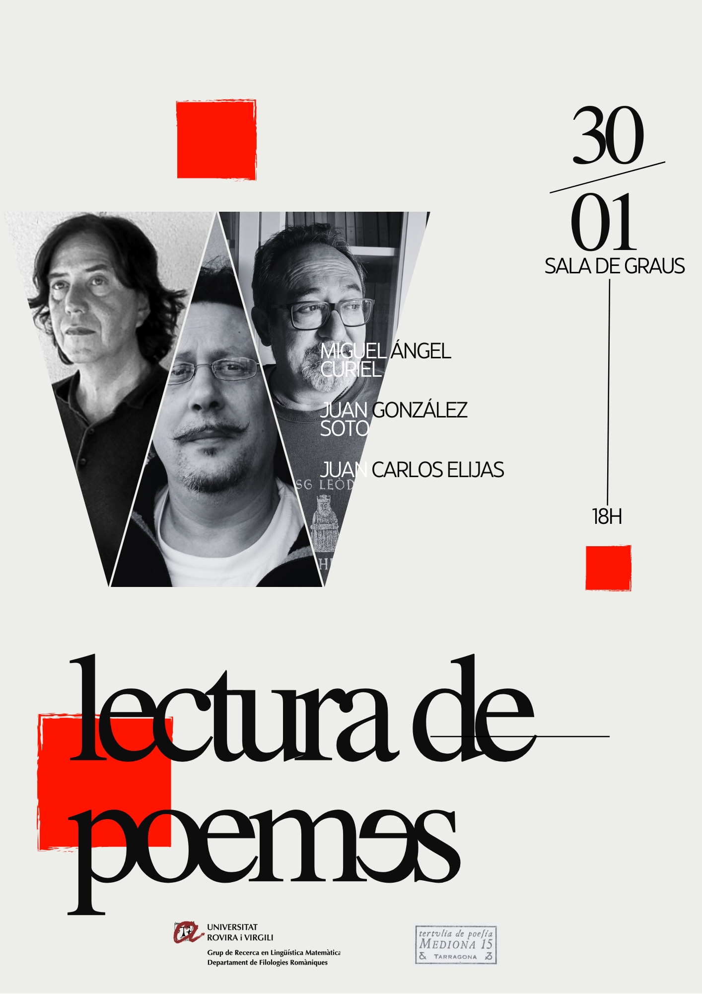 La lectura es completarà amb la intervenció de Juan González Soto i Juan Carlos Elijas, poetes de Tarragona i membres del col·lectiu Mediona 15, un grup que promou la poesia i la reflexió literària al territori.