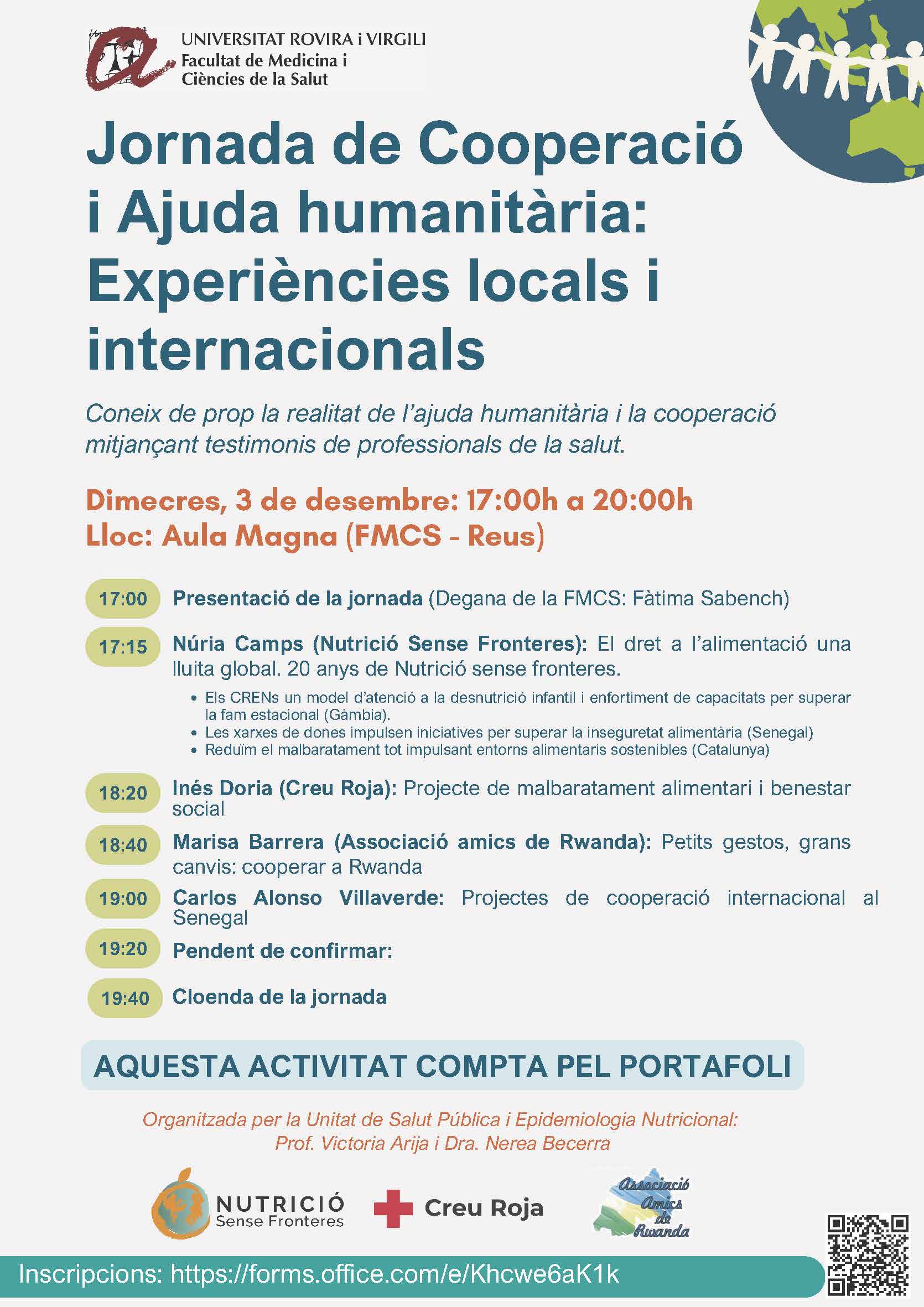 “Jornada de Cooperació i Ajuda Humanitària: Experiències locals i internacionals”, organizada por la Unidad de Salud Pública y Epidemiología Nutricional del Departamento de Ciencias Médicas Básicas.